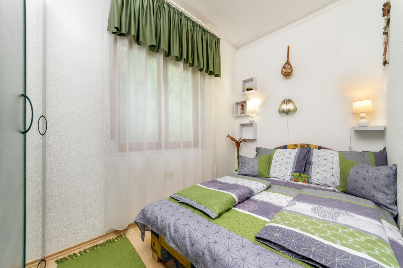 Önálló nyaraló 8 főre szépen ápolt kertben mosógéppel. Nagy virágos kert, kerti bútor, kerti grill, bogrács, napozóágyak, hintaágy, TV, autóbeálló.