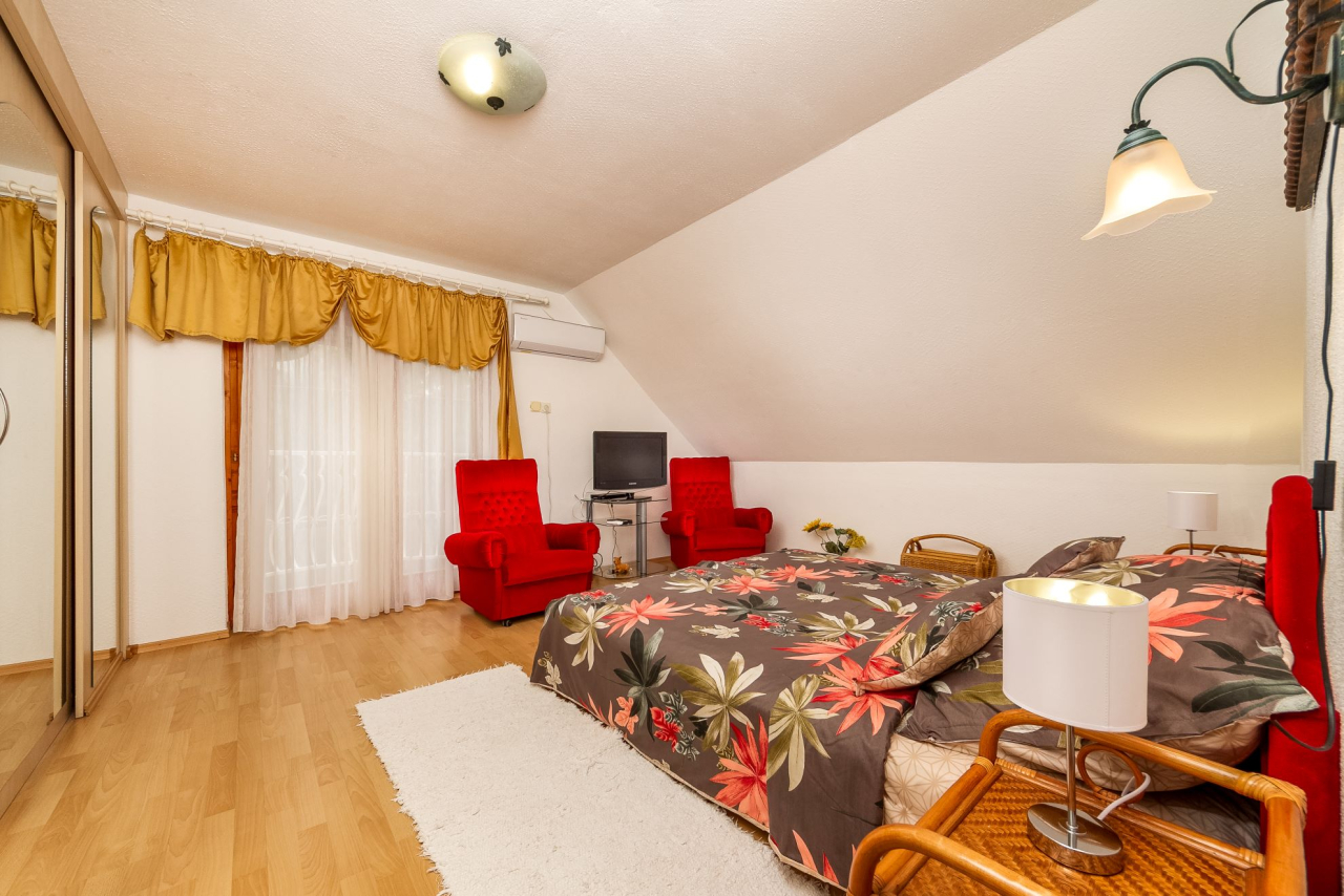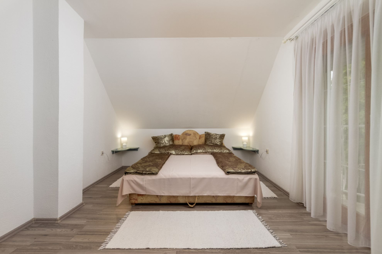 Emelet: két kétágyas szoba erkéllyel, zuhanyzó/WC