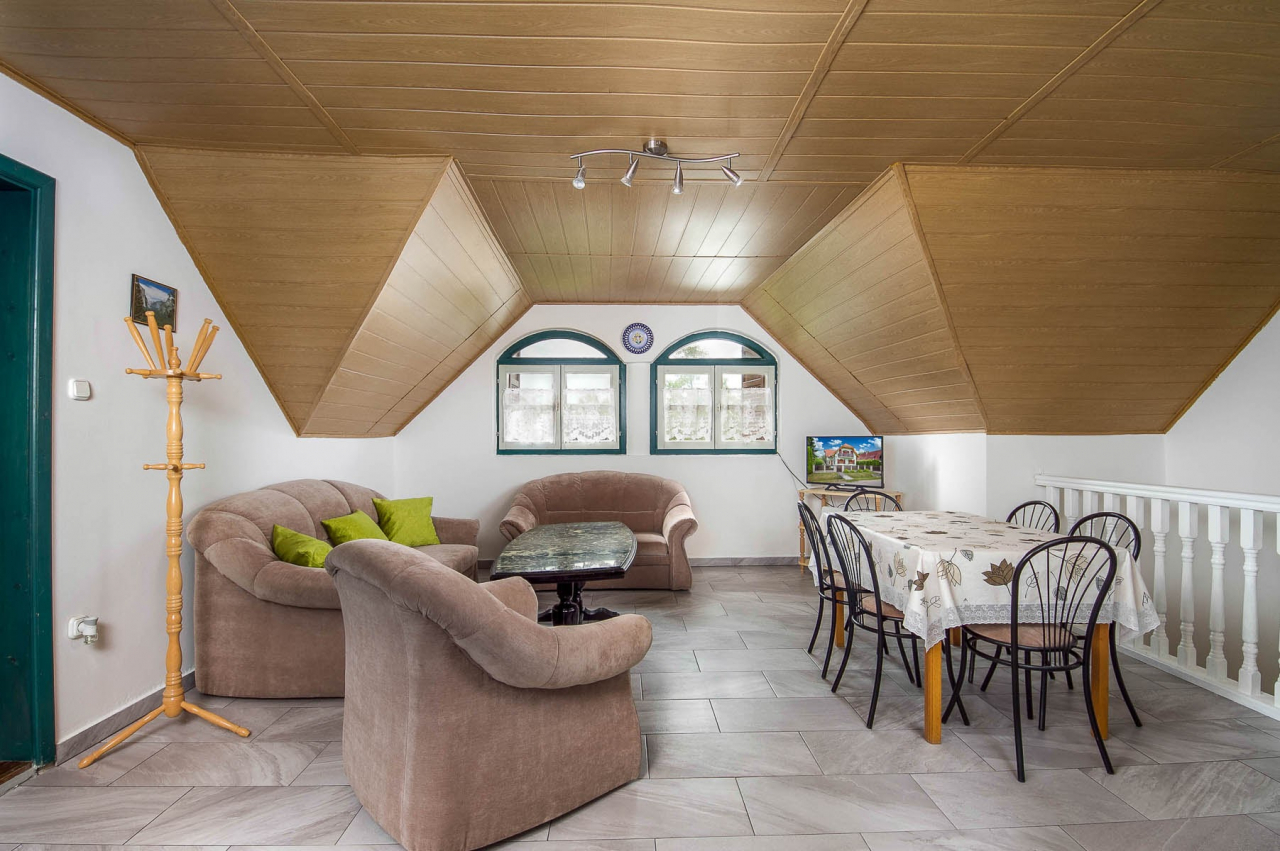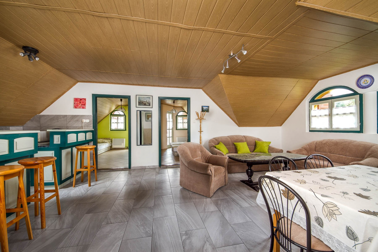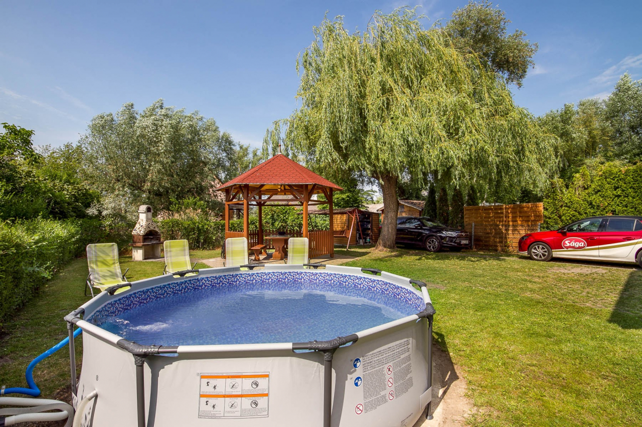 Informations: Holiday flat for 4+1 people near the beach with Pool, wifi and air conditioner. Calm, silent area. Garden, garden furniture, BBQ, pool; size 3,5 m, car parking, sattelite TV. The other flat can you booke too ( Codenumber: BM 54 ).