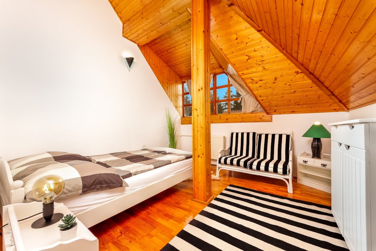 Emelet: Előtér, zuhanyzó/WC, három kétágyas szoba.