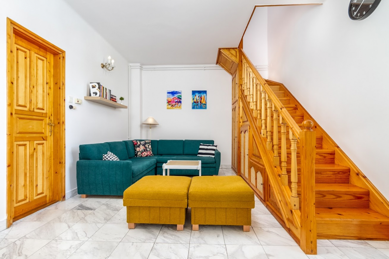 Földszint: Nappali főzősarokkal és étkezővel, fürdőszoba, WC, egy kétágyas szoba, terasz.