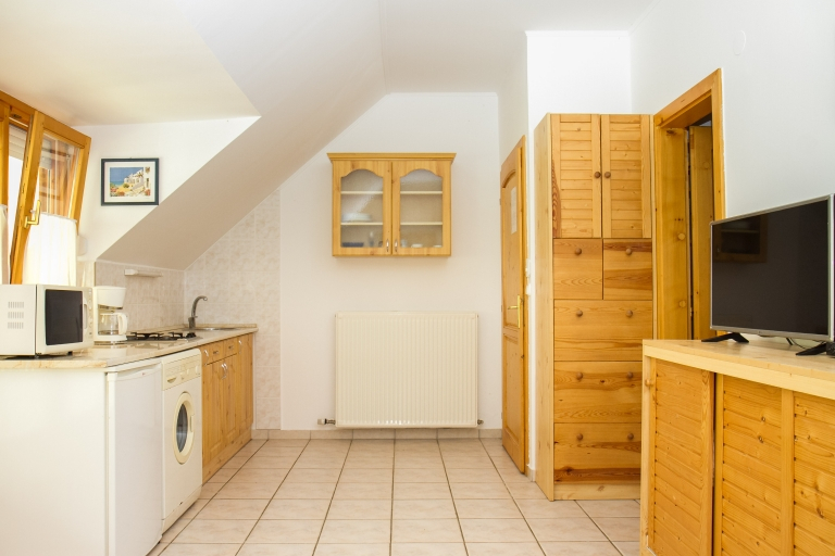 Emelet: Nappali konyha- és étkezősarokkal, két fekhellyel, zuhanyzó/WC, egy kétágyas szoba, fedett balkon rálátással a Balatonra.